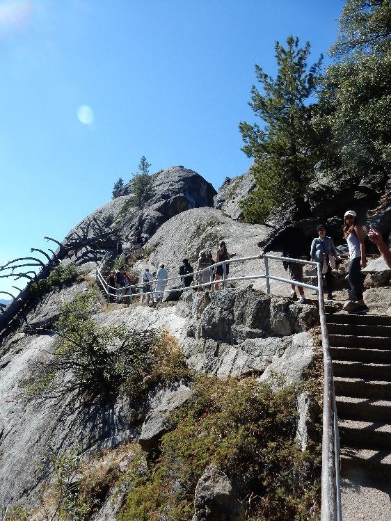 September 26, 2015 was the celebration for the 125th anniversary of Sequoia NP and the 75th anniversary of Kings Canyon NP. The celebration, the unseasonably warm weather and the fact that today was a “Fee-Free” day because of National Public Lands Day, resulted in a large number of people in the park. As a result we could not drive on the Crescent Meadow Road and had to take a shuttle to Moro Rock.