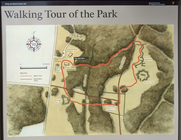 Ninety Six National Historic Site – Our third Revolutionary battle site of the day! Historians believe that this crossroads got its name because it was on the Cherokee Path from Charleston to the Cherokee Town of Keowee near present day Clemson SC – a distance of about 96 miles.