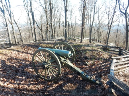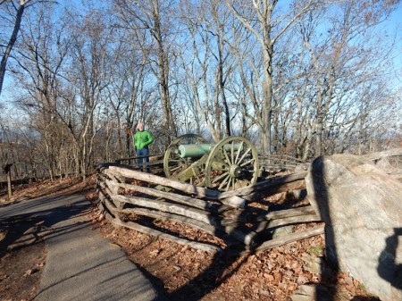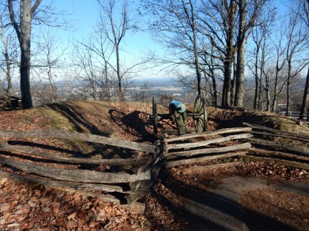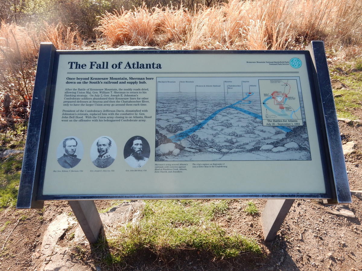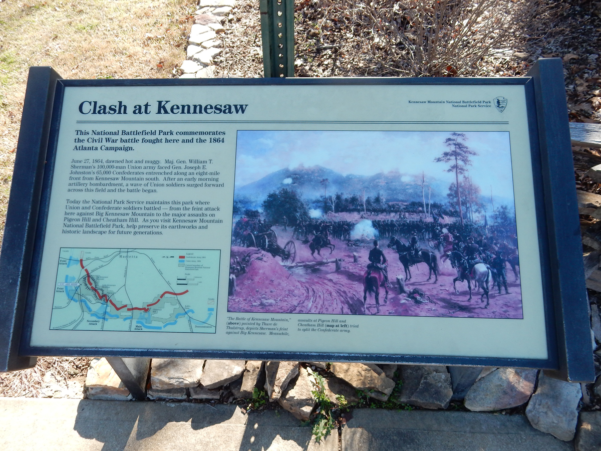 February 16 – we stayed in Marietta GA last night and this morning were in Kennesaw Mountain National Battlefield Park at 8:30am when the Mountain Road opened. Marietta is at the foot of Kennesaw Mountain.