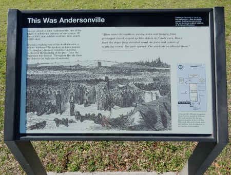 February 17 – First stop Andersonville National Historic Site. There are three parts. First, the Andersonville Prison site, which was a Confederate Civil War prison. It was originally called Camp Sumter Military Prison and opened in February 1864. It was intended to hold 10,000. By August, the number exceeded 32,000 Union prisoners.