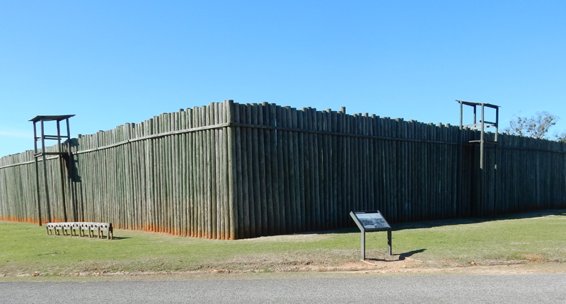 The stockade was 1,620 feet long and 779 feet wide. There were sentry boxes every 90 feet along the top.