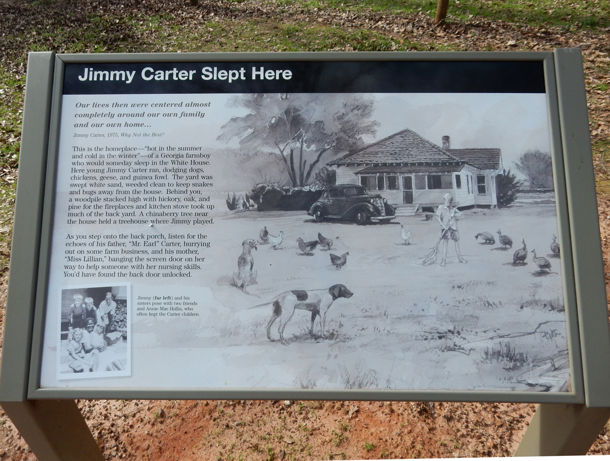 Jimmy Carter National Historic Site (NHS) Plains GA – The NHS has four parts, 1) Plains HS, 2) Carter Boyhood Farm and Home, 3) Plains Depot and 4) Current Carter Home, not open to public. We started at the Visitor Center in the old Plains HS that Jimmy and his wife Rosalynn attended.