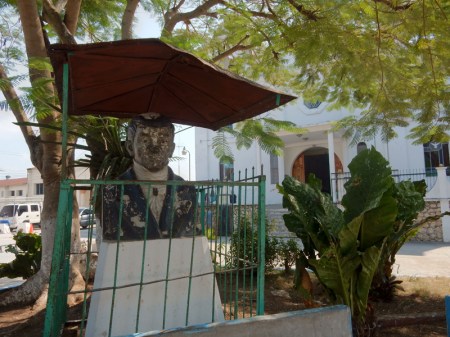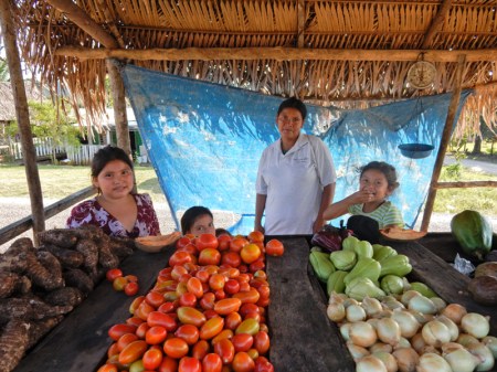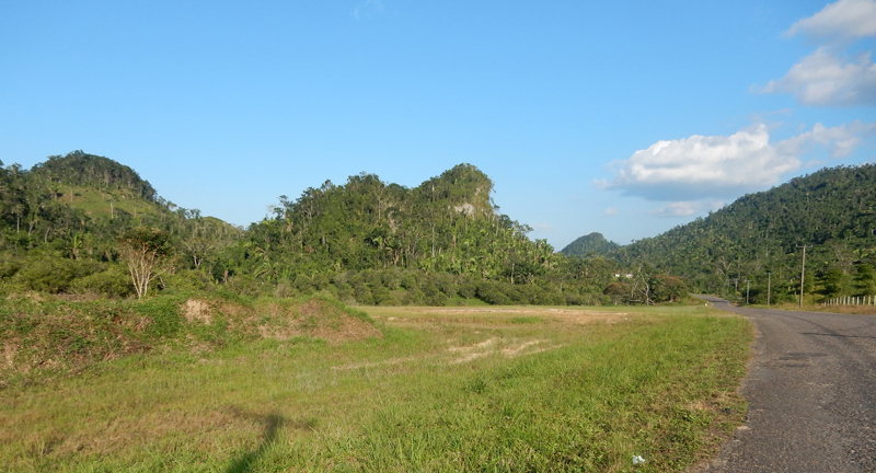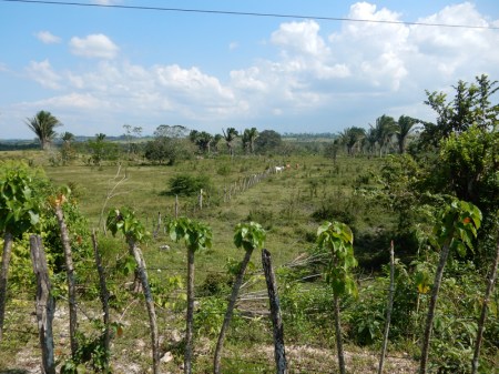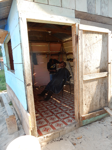 Our border crossing basically involved the same procedure as before, however, it being Sunday there was not as much traffic and it took under half an hour. We returned the same route passing through Belmopan (capital of Belize) and then took the Hummingbird Highway toward Hopkins. We traveled this road six times and I did not mind at all given the natural beauty in this part of the country. When I left Springfield, I brought with me 6 T-shirts, 2 polo shirts, 2 long sleeve shirts and a pair of swimming trunks to give away. I looked for individuals who looked like they could use a donation. The woman in this picture at a roadside fruit/vegetable stand was the mother of an El Salvador refuge family. If you look close, she is wearing a Springfield News-Sun Perfect Service shirt. This was our regular banana stop and we would also give the kids Double-Bubble Gum!