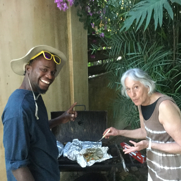We asked Mathew to grill two of the fish for us. He started by borrowing the grill and then we bought the coals and other ingredients at a local store. Almost every little food store we saw in this area was run by Chinese.