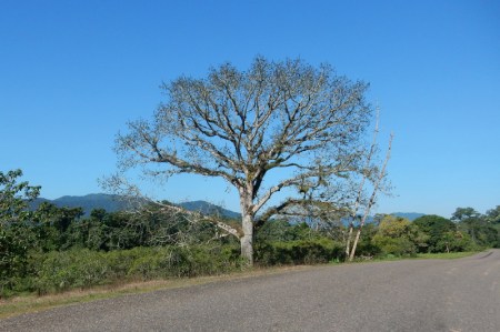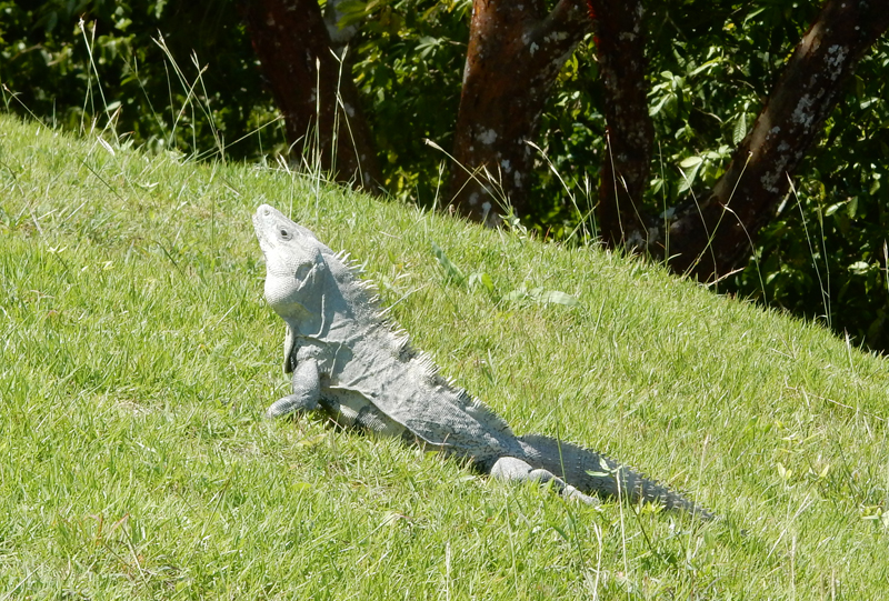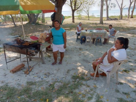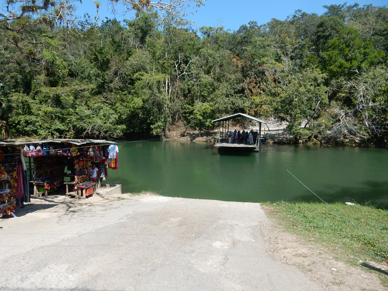 We couldn’t find the kind of local crafts we were looking for in the market, so we stopped in El Remate which is near the junction of the road to Tikal. Bought a couple of small wood carvings from a special needs man near the lake and then presents for family from the Cahui restaurant/gift shop. It was lunch time, so we thought we would try some local flavor with grilled ribs from two women set up near the lake. Yummy, two big lunches and drinks for $4!
