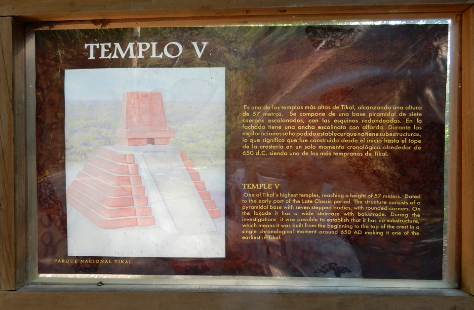 February 25 – We were at the dining room when it opened at 7am and started our self-tour of this large UNESCO World Heritage site at eight. The site is 222 square miles and it is estimated that only 7% of the original buildings have been excavated. Archeologists have estimated Tikal to be about the same size and population of Rome at that time. I believe this to be a Ceiba tree.