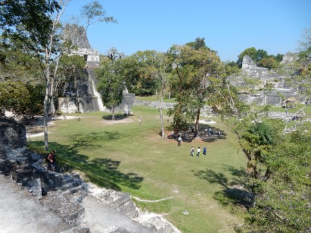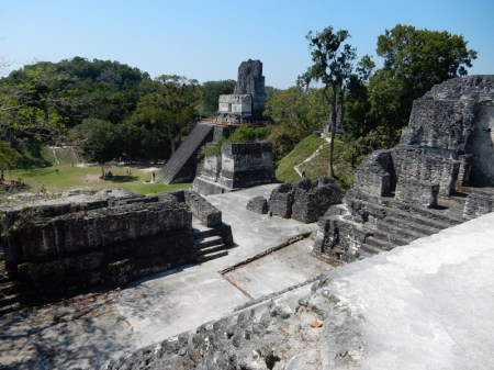 Looking west, tops of Temple III (left) and Temple IV (right) – you can get some sense of the distance we walked