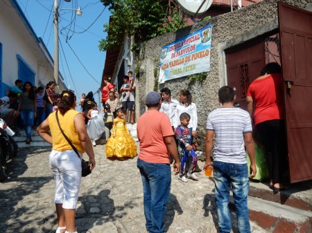 As we parked we heard a band playing and followed the sound – it was a children’s parade that they do on the Sunday before Lent. For us it seemed like a Halloween parade. The all-male adult horn/drum band was in the back.