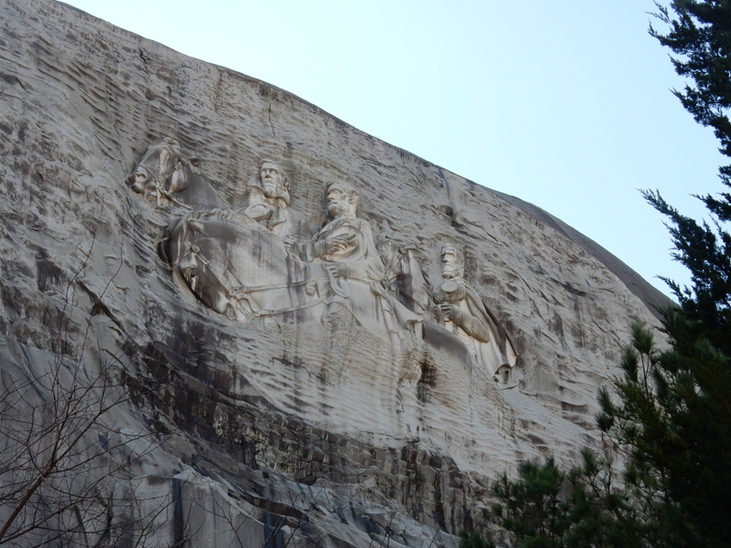 Gutzon Borglum started working in 1923 and the plan was to sculpt seven figures and an army of thousands. He completed Lee’s head on the general’s birthday in 1924. There were then funding disputes and Borglum abandoned the project. Borglum is best known for his later work at Mount Rushmore in SD. Another sculptor was hired (1925) and produced a new design. The design required that Lee’s head be blasted from the mountain. In 1928, the land owner refused to renew the lease and the project stagnated until 1958 when the state of GA purchased the site. Walter Hancock was hired as the new sculptor in 1963 and he continued working with some modifications of the previous design. Vice President Spiro Agnew dedicated the sculpture of Confederate President Jefferson Davis, General Robert E. Lee and General Thomas J. “Stonewall” Jackson in 1970.