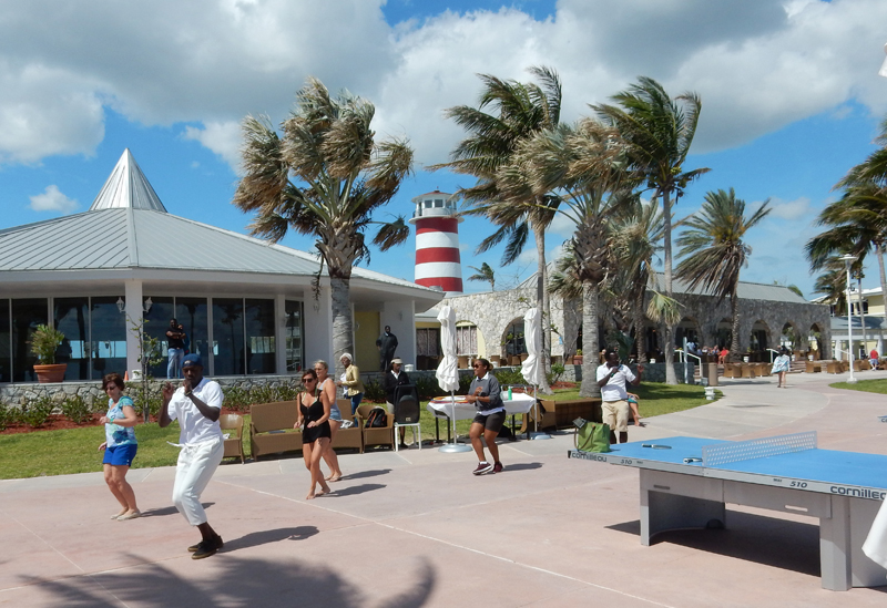 March 6 – We spent much of the day at the Grand Lucayan Resort across the road. Technically, we were not supposed to be able to use the grounds because we were not staying there. However, Helen met two women on the boat who were staying there and she hung out with them while I walked the beach. Dance class and lighthouse tower.