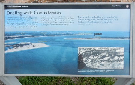 On November 22-23, 1861 the Confederates, who occupied Fort McRee and Fort Barrancas on the opposite side of the Pensacola Inlet, had a massive artillery duel with the Union force at Fort Pickens. The Confederates abandoned their forts in May 1862 to use their troops elsewhere.