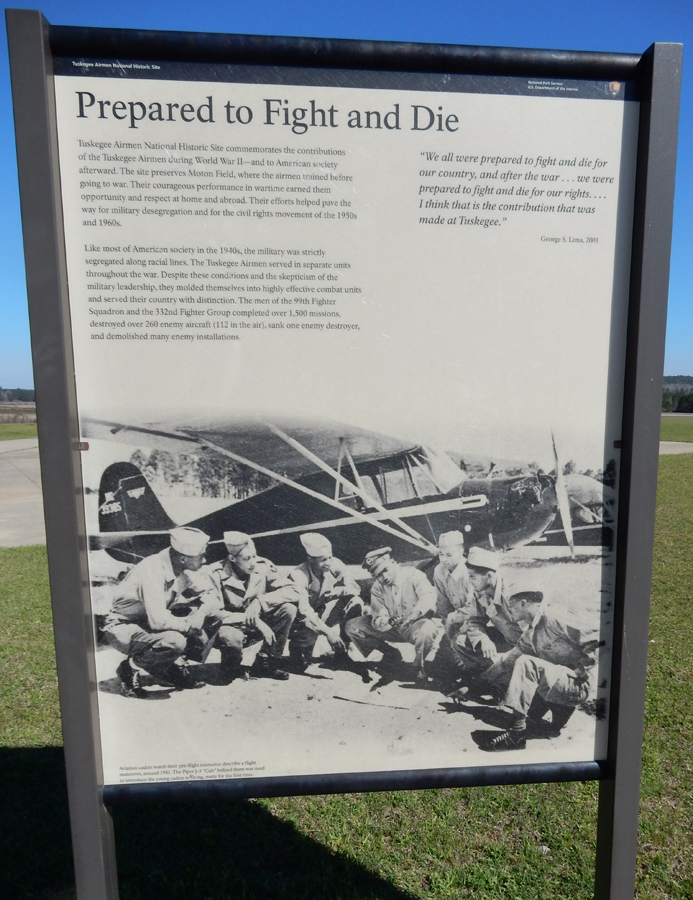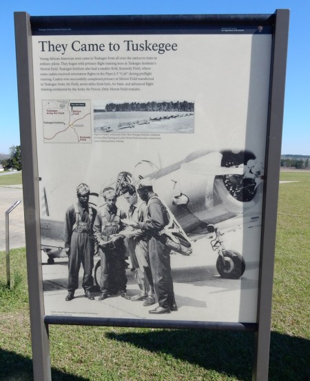 President FDR visited in 1939 resulting in the location of a Civilian Pilot Training Program at the Institute. In 1941, Tuskegee became the training base for the all African American 99th Pursuit Squadron. Primary flight training took place at the Institute with flight training at nearby Tuskegee Army Airfield. Tuskegee Airmen National Historic Site was established in 1998 and is a mere 15 min drive from Tuskegee Institute.
