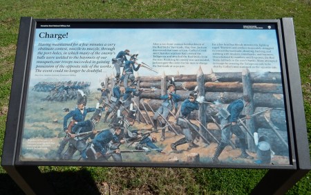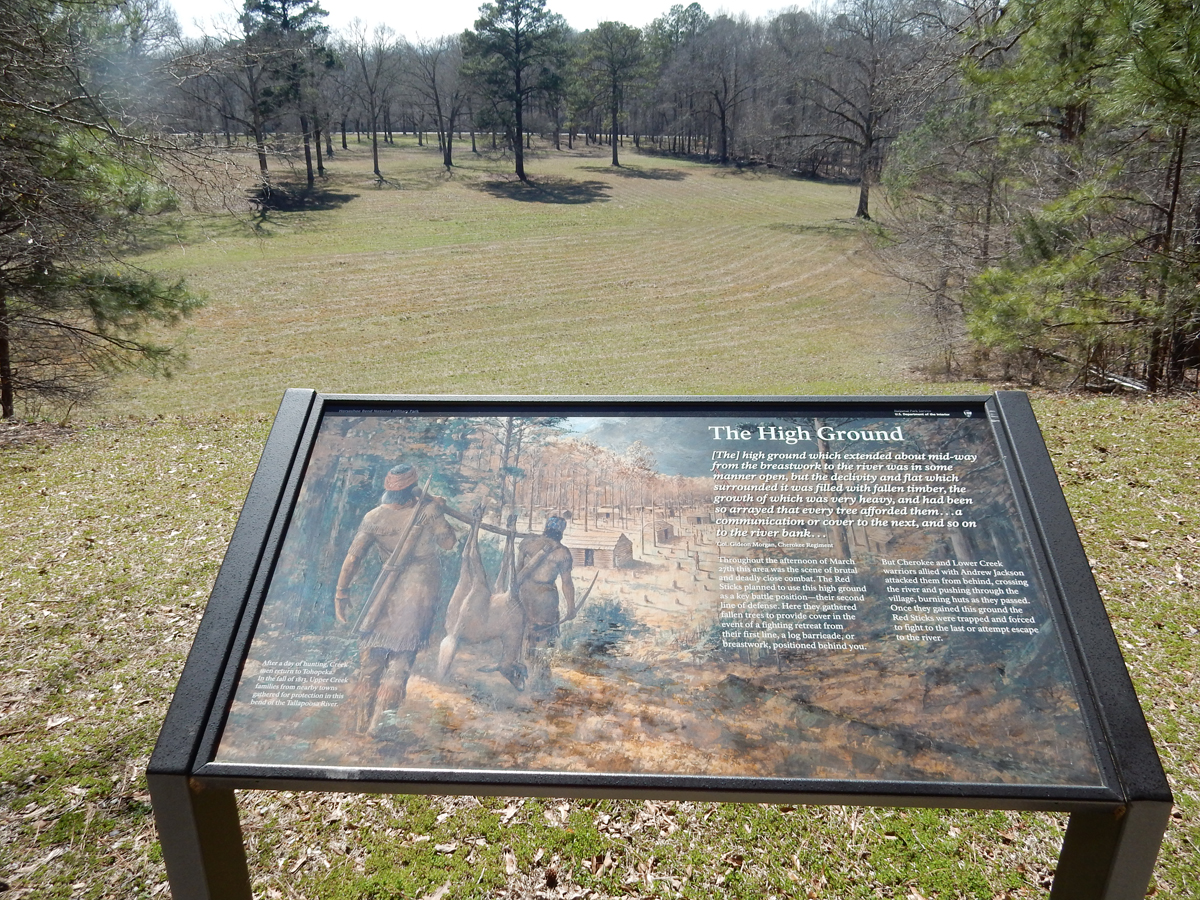 There was a temporary Indian village on the bend of the river that was called Tohopeka and Chief Menawa directed the fortification of the peninsula with a 5 to 8-foot-high log breastwork.