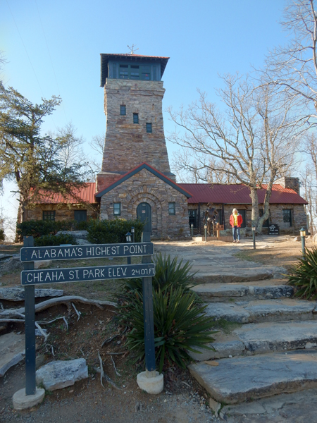 It took about 1.5-hrs to get to Cheaha State Park. Cheaha Mountain, at 2,405 feet, is the highpoint of AL. It was Helen’s 31st state highpoint.