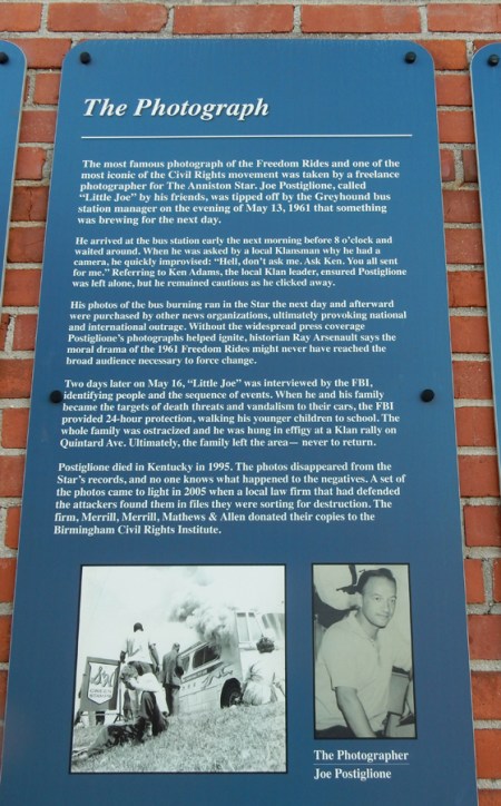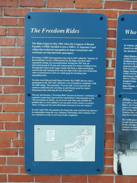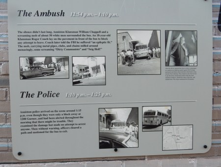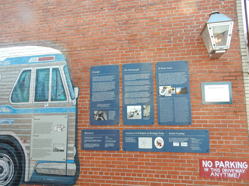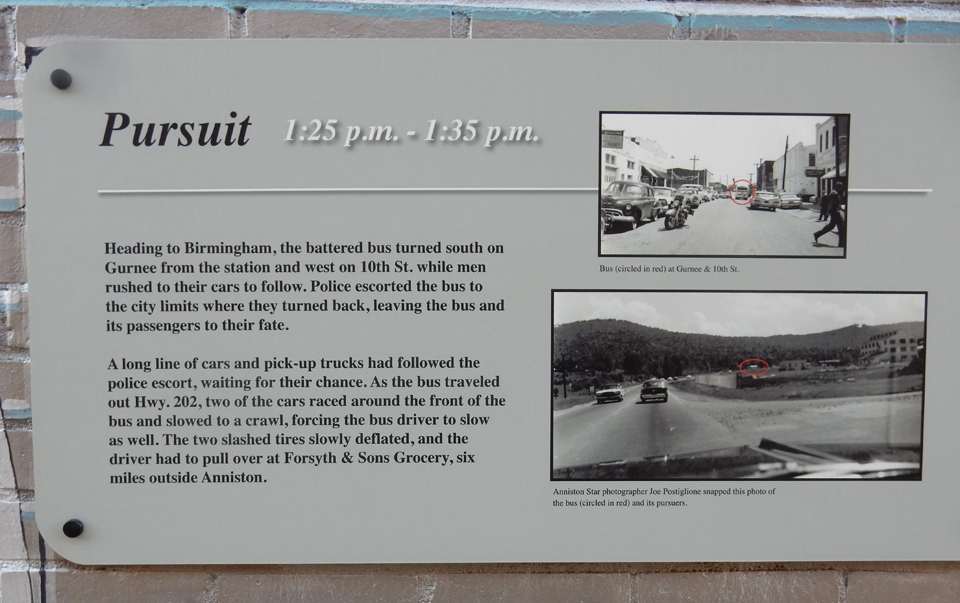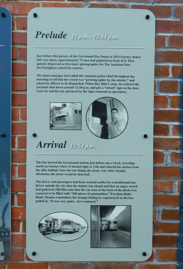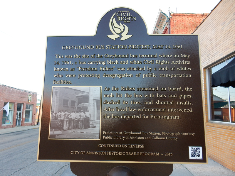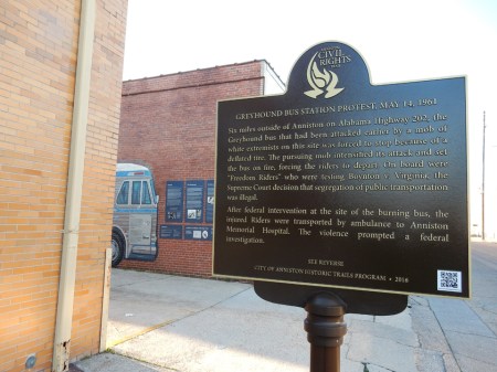 There are two parts to the monument. The first is the former Greyhound Bus Station in Anniston