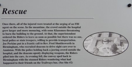 The second part of the monument is the Bus Burning Site on State Route 202 (Old Birmingham Highway) six miles west of Anniston. It was a little hard to find and not much there at this time.