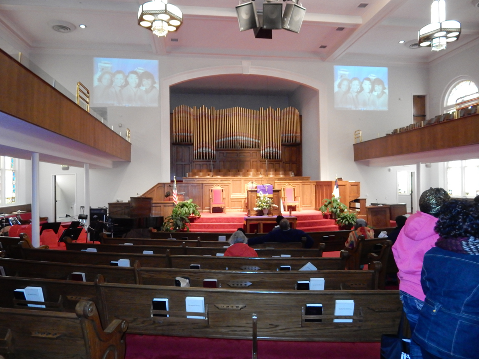 We were fortunate to be able to take a church tour that was starting at that time. We were told the story of four young black girls who were killed and 22 others injured by a bomb placed at the church on Sunday September 15, 1963. MLK stated that it was “. . . “one of the most vicious and tragic crimes ever perpetrated against humanity.” Note the girls picture projected on the wall.