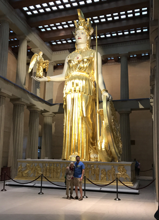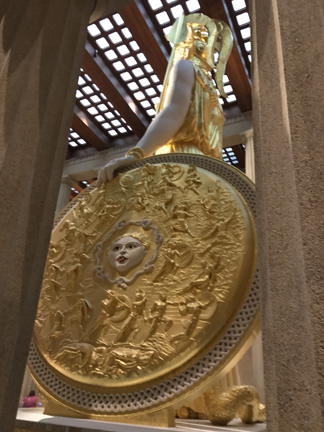 The 42 foot Athena, Goddess of Wisdom, statue was unveiled in 1990 and is gilded with 8 pounds of 23.75 carat gold. She holds a 6’ 4” Nike (Victory) in her right hand. That’s how tall Peter is –