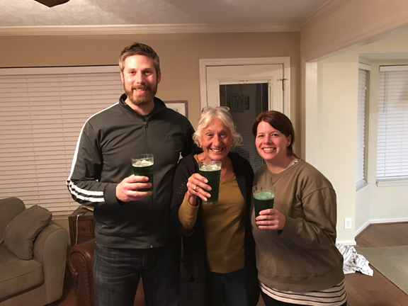 March 17 – St Patty’s Day! Lunch and cards with JoAnn and Larry; green beer with Peter and Heather