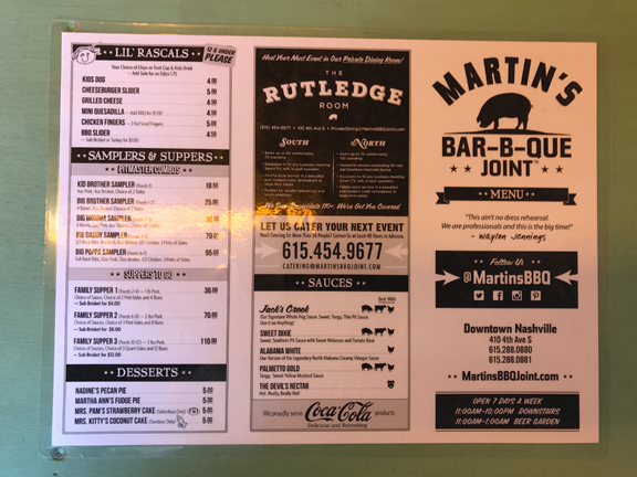 It was a good thing we did a lot of walking because they then treated us to a rib dinner at Martin’s BBQ Joint.
