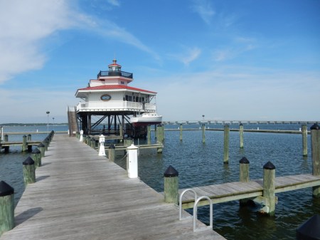 Chesapeake Bay Lighthouse in Cambridge MD and Bay Bridge, had dinner in town before driving to Towson MD for the night