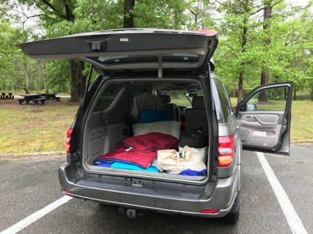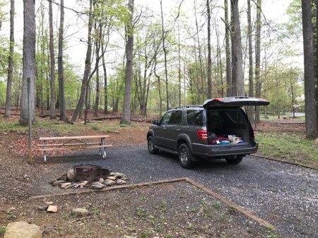 I slept in our Toyota Sequoia SUV at the Oak Ridge Campground