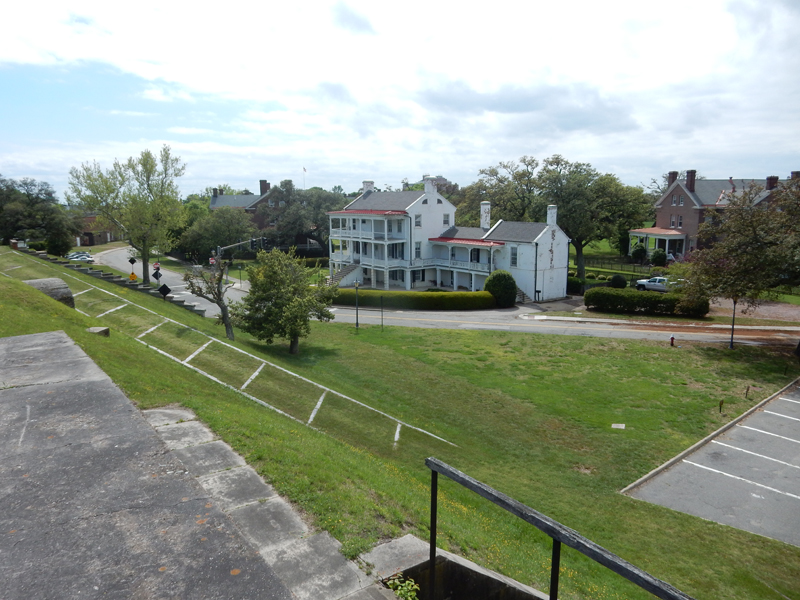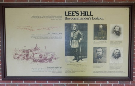 It sits atop a bluff overlooking the Rappahannock River and Fredericksburg.