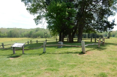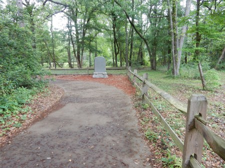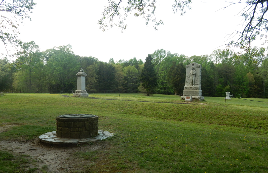 The Battle of Chancellorsville took place four months later. At that time there was no village here, just the Chancellor family home about 10 miles West of Fredericksburg – which was destroyed during the battle. House Site –