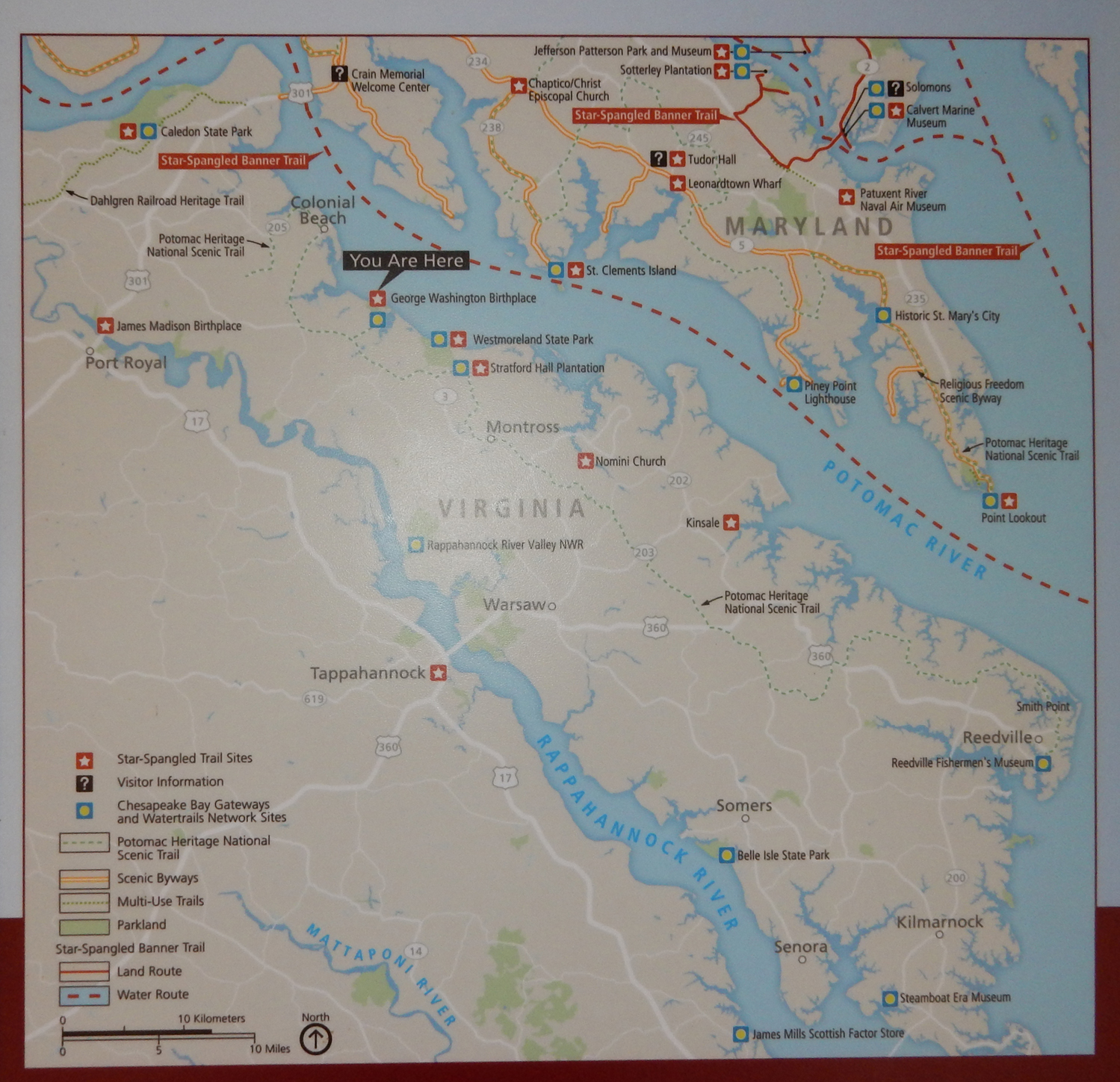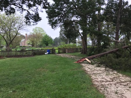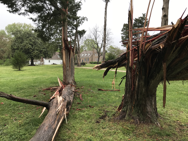 April 22, Earth Day! – Arrived at George Washington Birthplace National Monument at 9am and found it closed. A tornado had hit the previous evening, trees were down, splintered and leaning on each other. Debris covered the ground. Though I was not able to get in the Visitor Center or the re-created house, I was able to walk the grounds along the Potomac River as well as the farm area before Tim, a security ranger, arrived and asked me nicely to leave (liability reasons – limbs still hanging in trees, etc.). Mother Nature demonstrated that she is still in charge!
