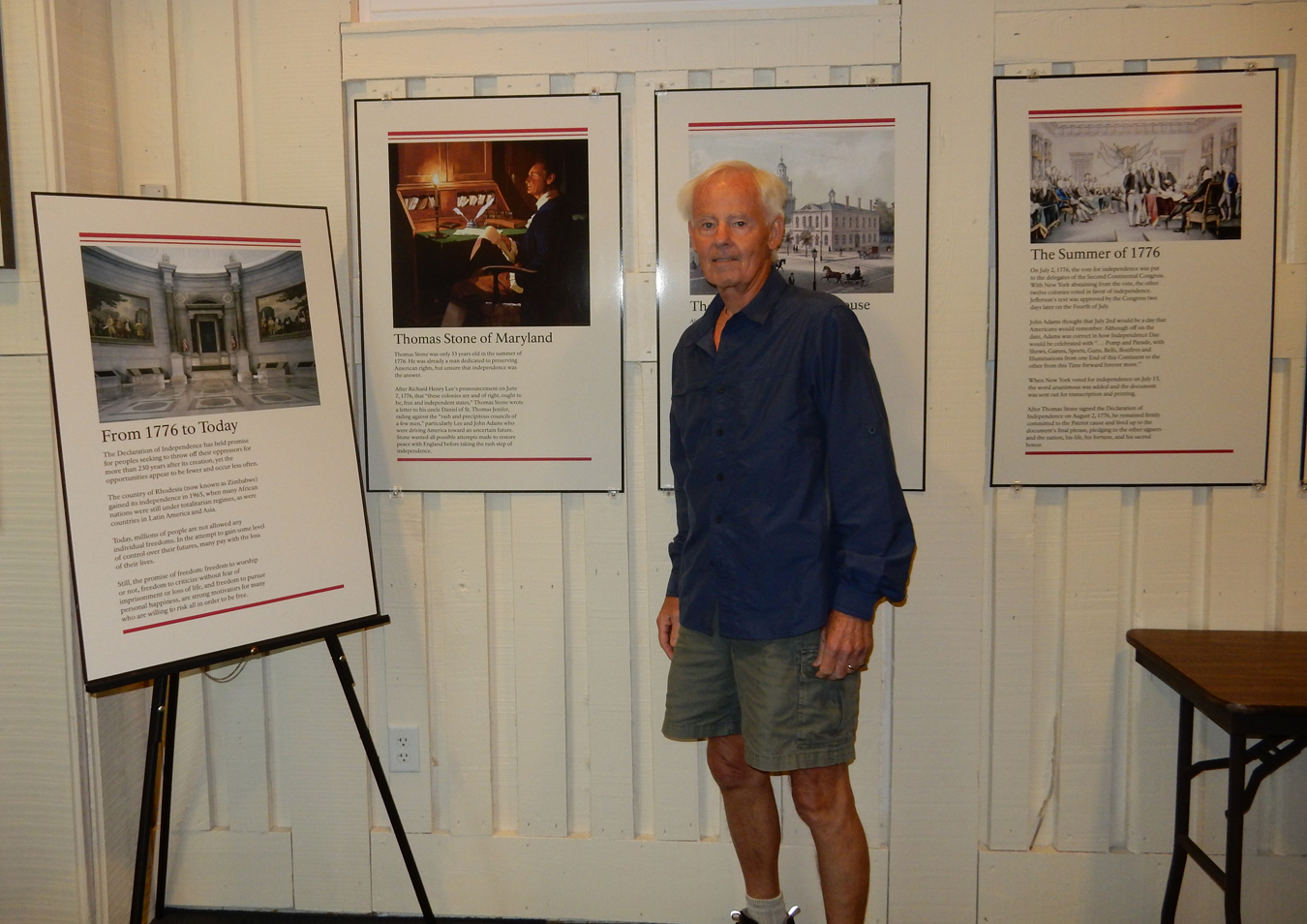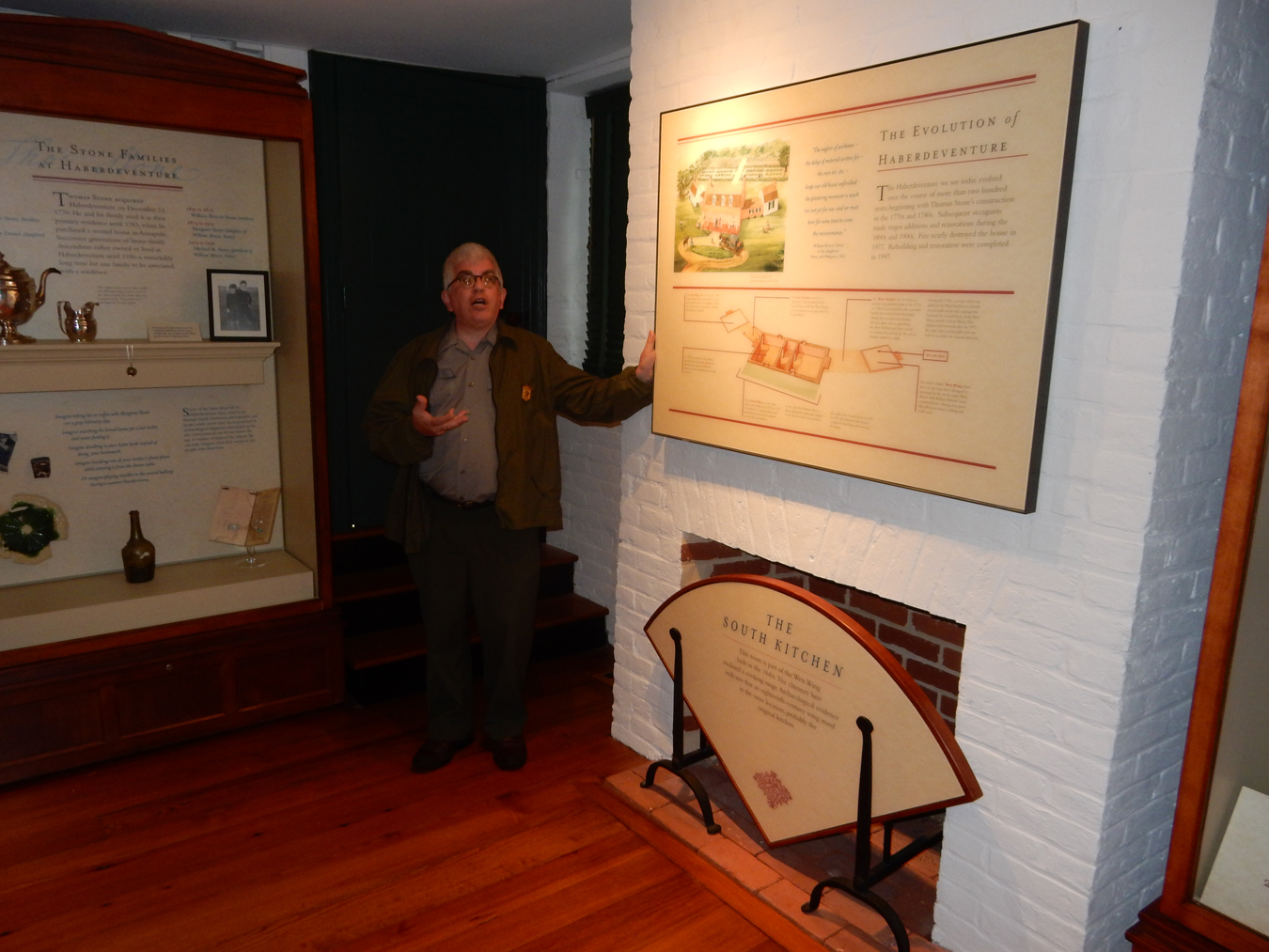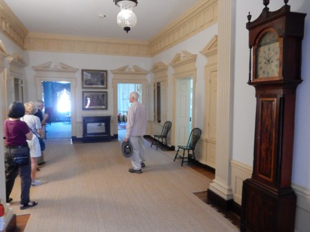 After crossing the 301 Bridge over the Potomac River from VA to MD, it was a short drive the Thomas Stone National Historic Site. Stone was born in 1743 to an affluent family near Port Tobacco MD. It was the second largest town in MD at the time and, as the name implies, was located on the Potomac River. Stone became a noted lawyer, purchased a 442-acre plantation (called Haberdeventure – “dwelling place of the winds”) in the 1770s. He became a “quiet” leader in MD politics serving in Charles County and at the second Constitutional Convention in 1775. He was a British loyalist who came to believe that independence was best for the country. Though risking his wealth and life, he chose to sign the Declaration of Independence on July 3, 1776 as a MD representative. Back (porch) side of house