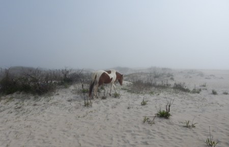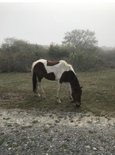 The mist cleared as I was driving out of the park. I came across some of the wild horses that make the seashore their home.