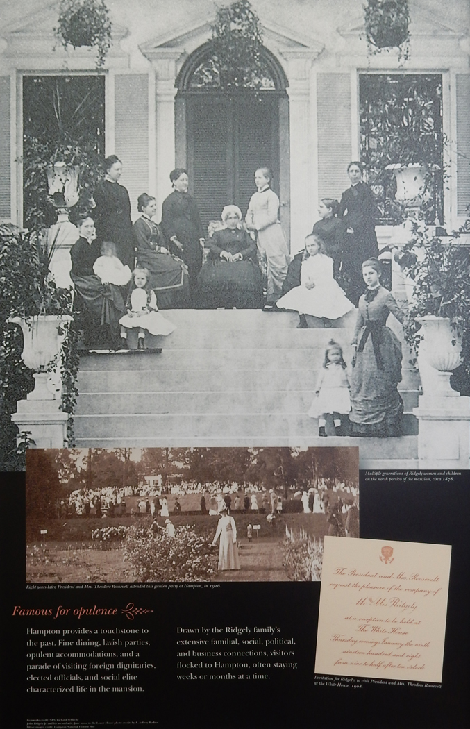 The Civil War started Hampton’s decline. By the time the estate reached John Ridgely, the 6th Master of Hampton, it was in financial trouble. Fortunately, he received support from the Avalon Foundation to keep the mansion and immediate grounds. When Hampton became a National Historic Site in 1948, he moved into the farm house on the property with his wife and started charging an entrance fee to see the mansion. The Mellon family trust then acquired the property and in 1979 it was donated to the federal government.