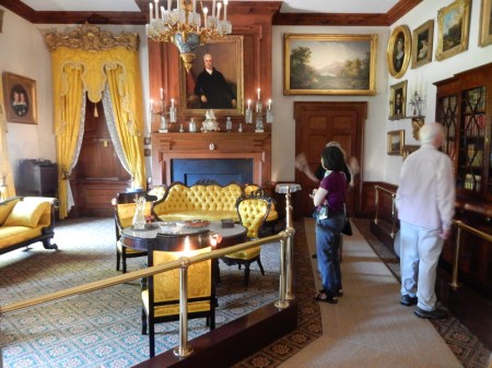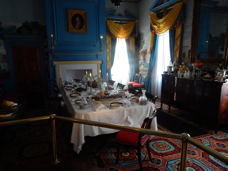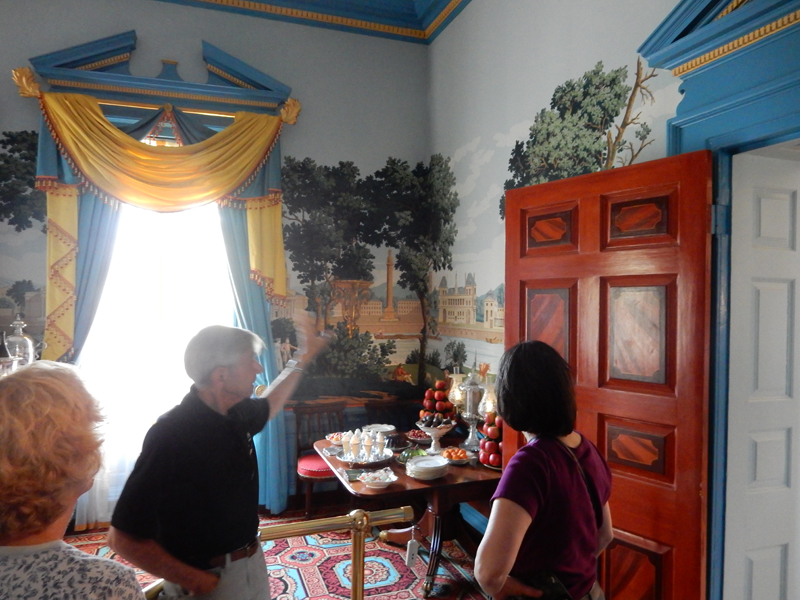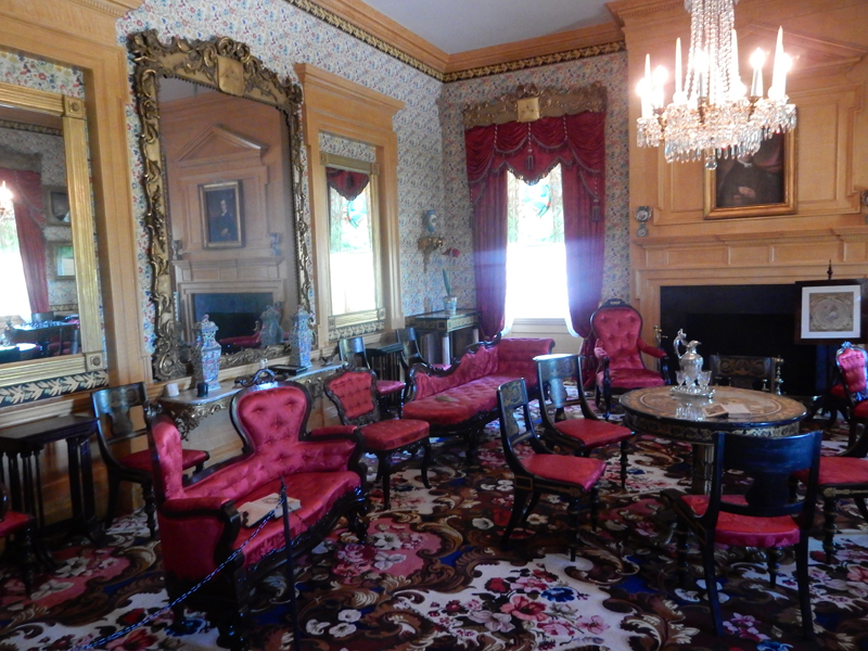 Hampton Mansion was built between 1783-1790 in the Georgian style popular at the time. It was elegantly furnished with imported and locally made furniture and decorations. I have many photos of the rooms. I will only include a few here. First, the music room