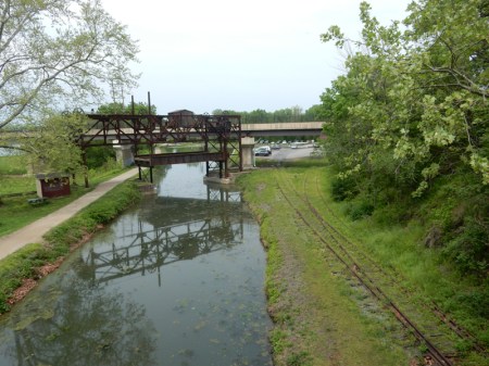 Lift bridge for canal boats so they could go under the Western Maryland Railway