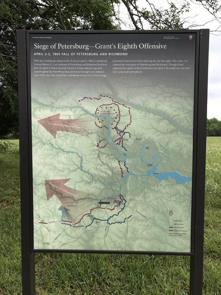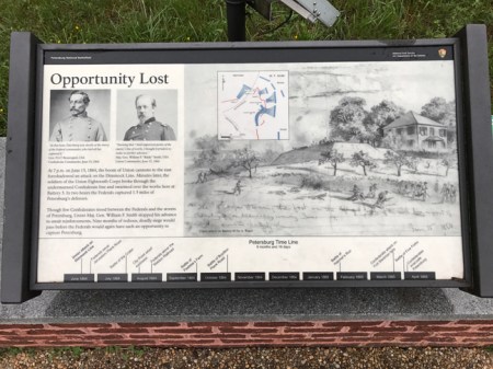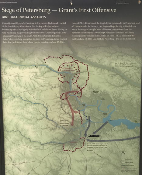In the end, Grant set up positions north and east of the city (1864) and then moved south (about 25-miles) to place a siege on Petersburg, an important rail and supply center for Richmond, for 9.5 months.