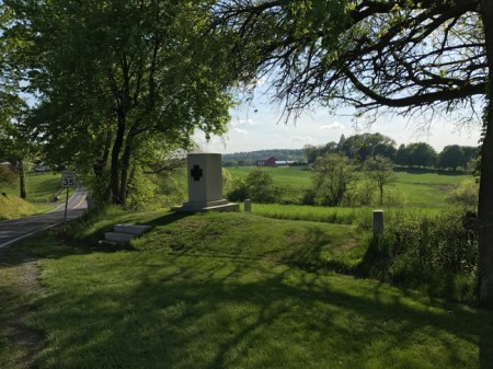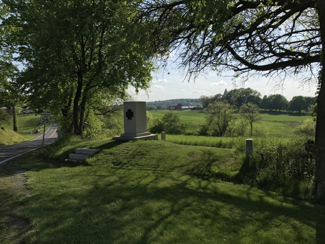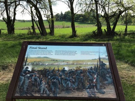 The Confederates then attacked the Thomas farm, VT monument with Thomas farm in background