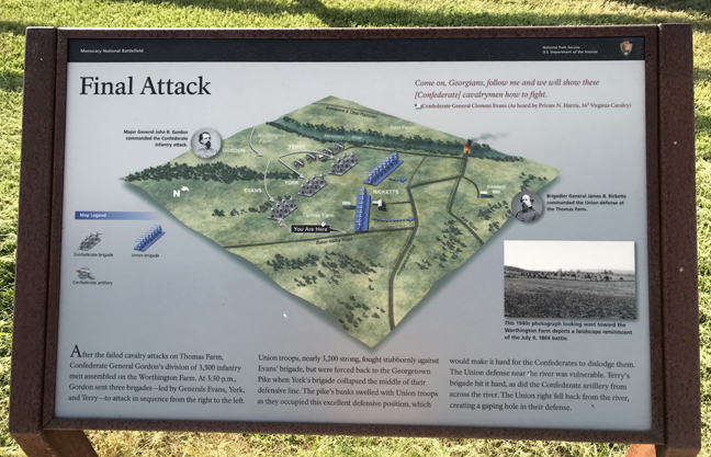 Lt. Gen Jubal Early’s goal was to take Washington DC. It was weakly defended because the bulk of Union troops were in northern Virginia. Monocacy was a Confederate victory but Maj. Gen Lew Wallace was able to delay the Confederates long enough for additional troops to be brought to DC. Few people realize that some of Early’s troops got as far as Fort Stevens the remains of which are in Rock Creek Park in DC.