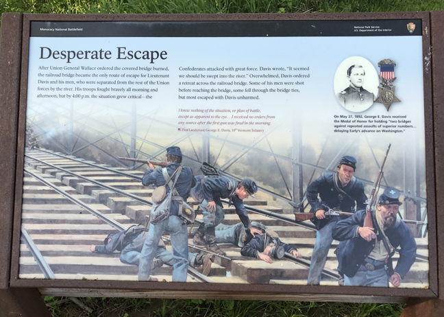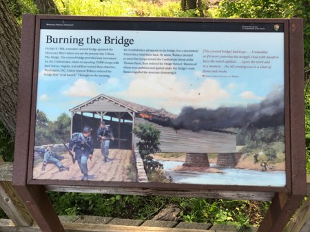 The road bridge across the Monocacy River was burned by the Union to slow the Confederate advance
