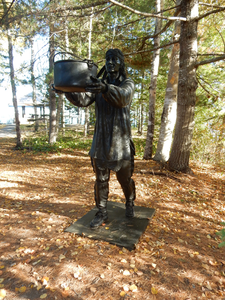 In 1604, Pierre Dugua sailed from France with the directive to “establish the name, power, and authority of the King of France; to summon the natives to a knowledge of the Christian religion; to people, cultivate, and settle the said lands; to make explorations and especially to seek out mines of precious metals.” This is a bronze of the settlement designed by Samuel Champlain who was on the voyage. Champlain hoped to discover a “Northwest Passage” to the Orient.