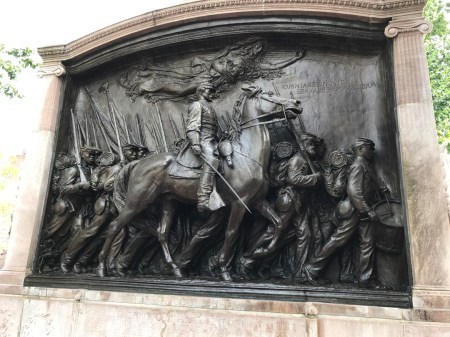 On this trip we wanted to visit the Boston African American National Historic Site and do the “Black Heritage Trail” (1.6 miles). This bronze relief sculpture titled the Robert Gould Shaw Memorial by Saint-Gaudens is located at the NE corner of Boston Commons. It depicts the first Black Civil War Regiment, the 54th Massachusetts (1863).
