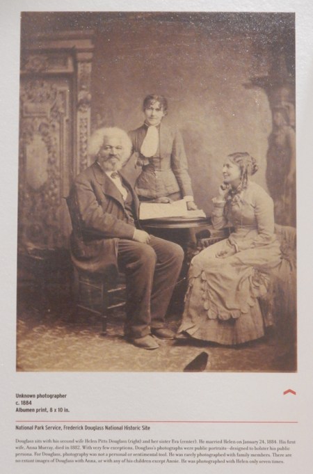 Douglass’s first wife Anna Murray died in 1882. In 1884, he married Helen Potts (right). Her sister Eva is in the center of the photo.