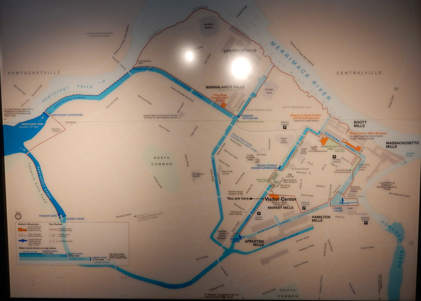 A free trolley runs from the Visitor Center to the Boott Cotton Mills, but we found it faster to walk than to wait on their schedule. However, if I come back again, I would enjoy taking the ranger trolley tour. There is also a ranger canal boat tour, but it was closed for the season.