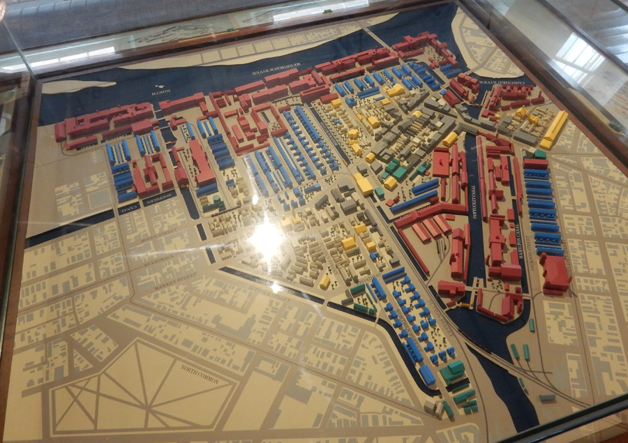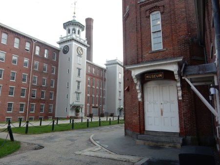 10/15 – Lowell National Historical Park, just NW of Boston. Lowell was built as a factory city along the Merrimack River 1821-22. A dam at Pawtucket Falls harnessed the power of the river and directed it via canals through the city. This was the beginning of the Industrial Revolution in America, changing the country from agrarian to primarily industrial. Cotton textiles fostered not only working-class labor in the mills but also supported slave labor on the cotton plantations in the South. The Visitor Center is located in Market Mills, formerly known as Lowell Mills.