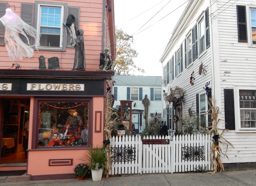 When we arrived in Salem it was extremely difficult to find a parking place. There are more tourists in October than at any other time of the year. The main attractions are related to the Salem Witch Trials and Halloween. Of course, the Fall colors are also an attraction. Hundreds of tourists in costume crowded the street. The annual Muscular Dystrophy Association (MDA) Motorcycle “Witch Ride” from Revere MA to Salem arrived at the same time we did! Lots of noise!