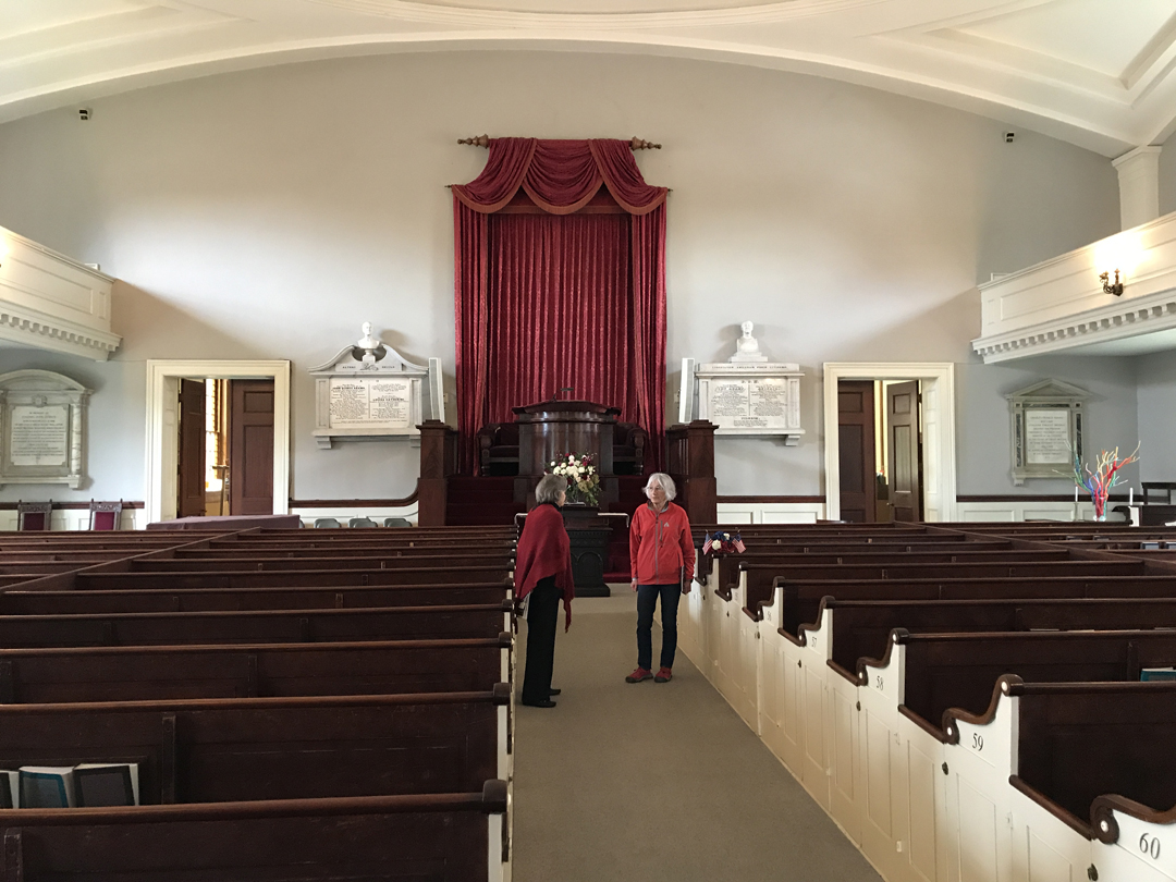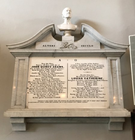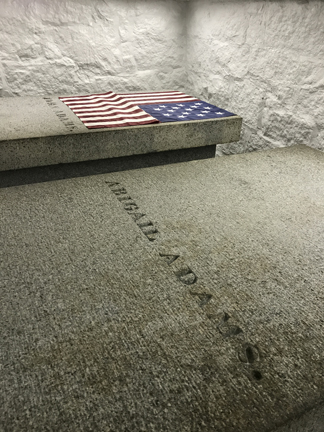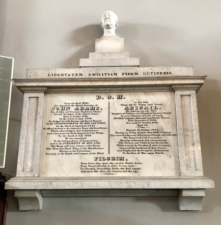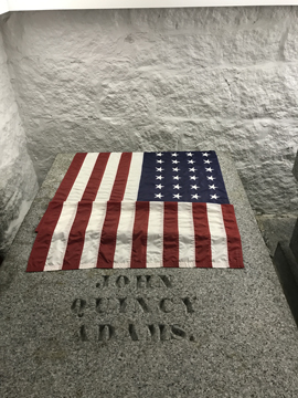 After returning to the Visitor Center by shuttle trolley, we walked to the United First Parish Church. It was built in 1828 and partially financed by John Adams. It is the final resting place of TWO U.S. Presidents and their wives.