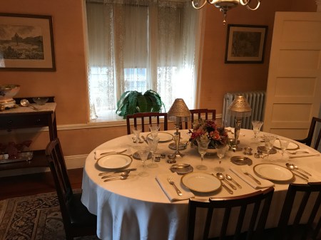 Dining Room – note the second picture showing how the young children were always included in the meals. Rose was a strict mother and directly involved in the education of her children. She had many “home tasks” for them including asking their thoughts at the evening meal on an article she had posted that morning. Something I wish I had done with my own children.