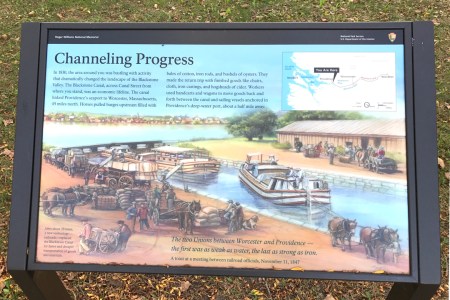 Along with the Industrial Revolution came a transportation revolution. Horse drawn wagons were too slow and expensive. There was a need to move heavy cargo cheaply and efficiently between the mills on the river and the port of Providence. The river itself was impassible to large boats. The first solution was the construction of the Blackstone Canal in 1824-1828. The canal was faster than roads, but more importantly much cheaper. Each canal barge could haul 30-35 tons of cargo pulled by only two horses.