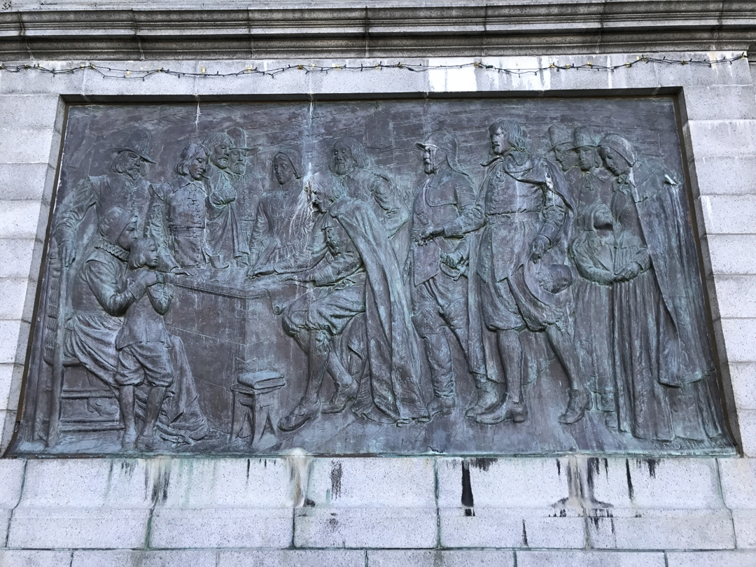 Provincetown Harbor is where 41 Pilgrims signed the Mayflower Pact before stepping ashore on 11/11/1620. So, they first landed in what is now Provincetown NOT in Plymouth! The Pilgrims decided to move to what they called New Plymouth (because they had left from Plymouth England) 35 days later. There is no evidence that they actually landed on Plymouth Rock! They probably landed on the beach. I guess today you would call that Fake News! In 1774, Plymouth townspeople decided to move the top half of the rock to the town’s square and leave the bottom half where it was. In 1880, the top half was brought back and “re-joined” to the bottom half and the date 1620 was inscribed on it. In 1920 the rock was temporarily removed so that the old wharves could be removed and the waterfront re-landscaped. When it was returned, it was placed at water level. Through the years, pieces of the rock where chipped off for souvenirs. Approximately two-thirds of the top half of the rock was removed. Nevertheless, Plymouth Rock remains a symbol both of the virtues and flaws of the first English people who colonized New England. In addition, the folks of Plymouth are glade most Americans believe that the Pilgrims first landed on Plymouth Rock!
