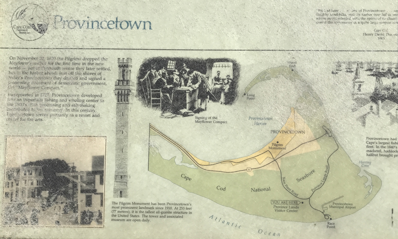 Provincetown is located within the protection of “The Hook” of the Cape. In 1616, John Smith described Cape Cod as “made of the main sea on one side, and a great bay on the other in the form of a sickle.”