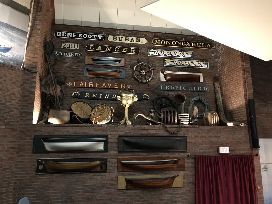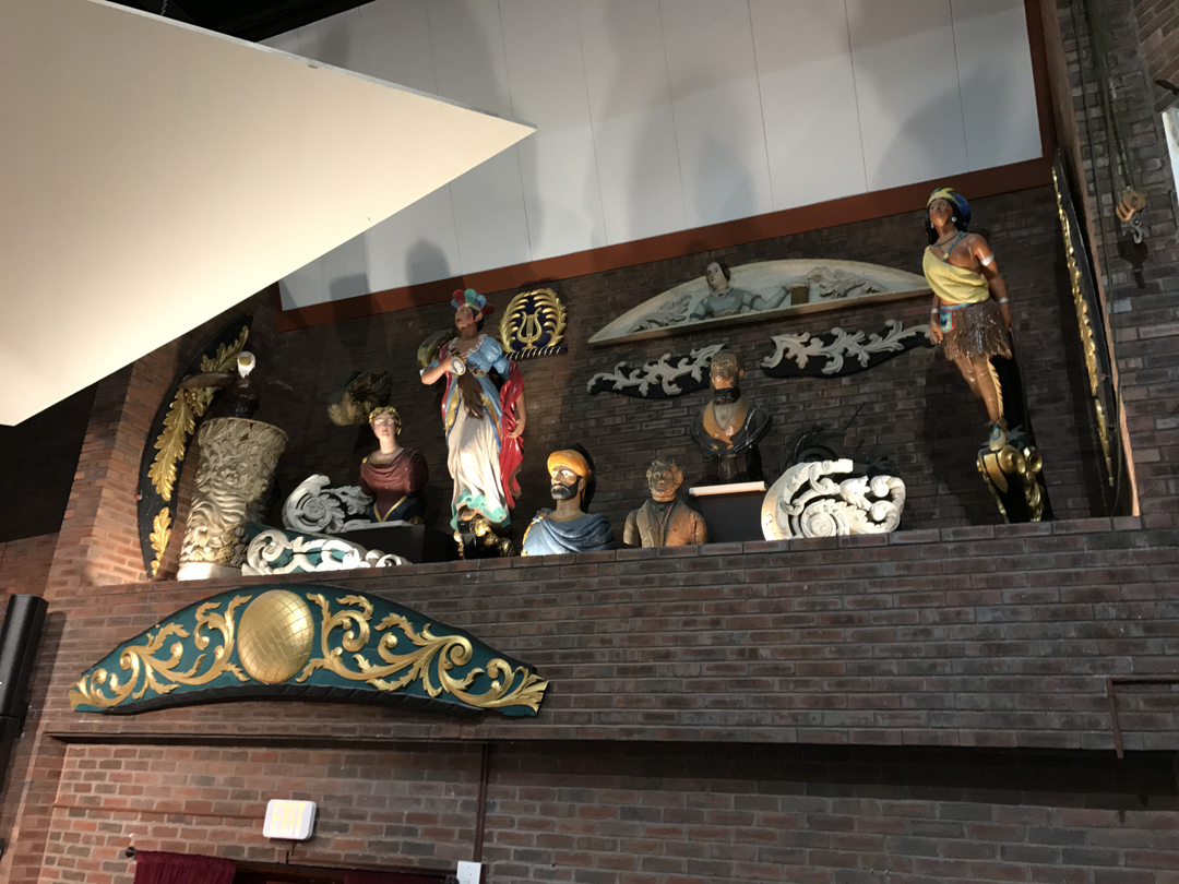 The theatre held figureheads, name boards (stern) and quarterboards (bow or quarter panel) and other sailing memorabilia